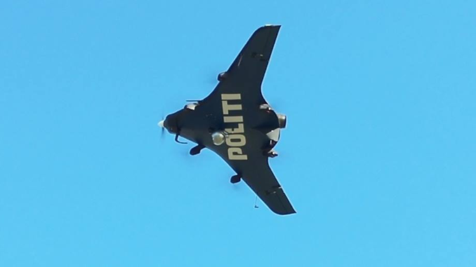 En nyindkøbt fastvinget drone skal fra mandag supplere politiets indsats ved den dansk-tyske grænse. Dronen har et vingefang på tre meter og vejer knap 25 kg. Den bliver udstyret med samme tydelige politi-staffering som politiets patruljekøretøjer, ligesom dronen vil have et blåt blink på undersiden. Blinket kan aktiveres, hvis der er behov for yderligere at synliggøre, at der er tale om politiets drone.